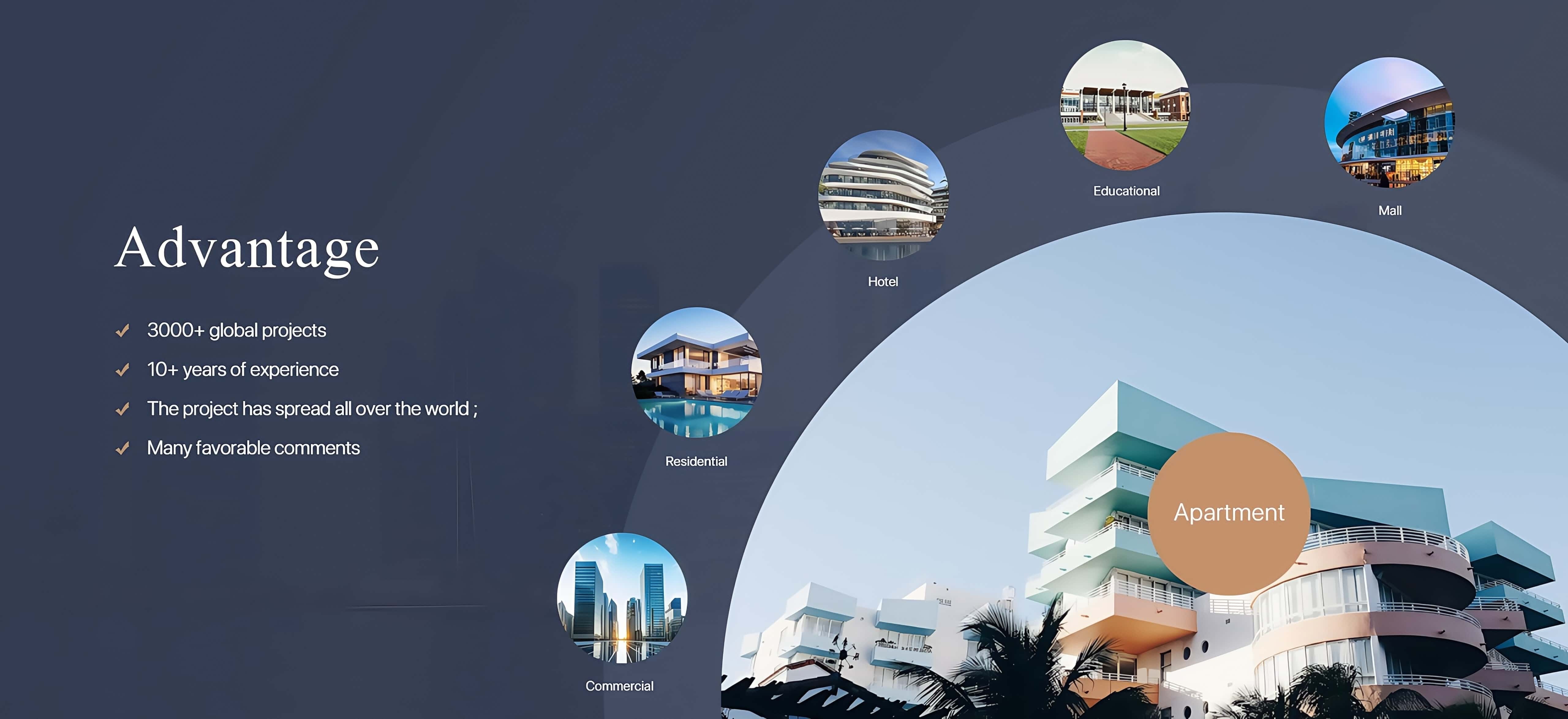Mainly working with the Builder, Developer, Contractor, Home owner, Designer and Architect, on hotel, office, shopping mall, apartment, villa, house projects in over 100+ countries.