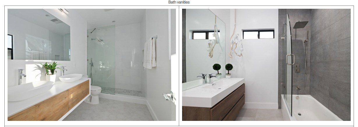 Free-standing bath vanities as required,with natural wood veneer and classic ceramic sinks. Easy cleaning dry and wet separate design, with mirror cabinets getting hidden storage space.
