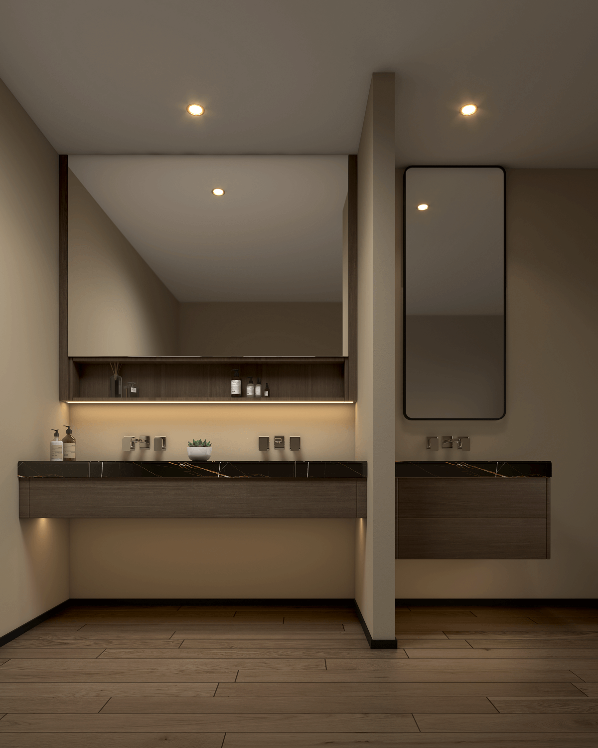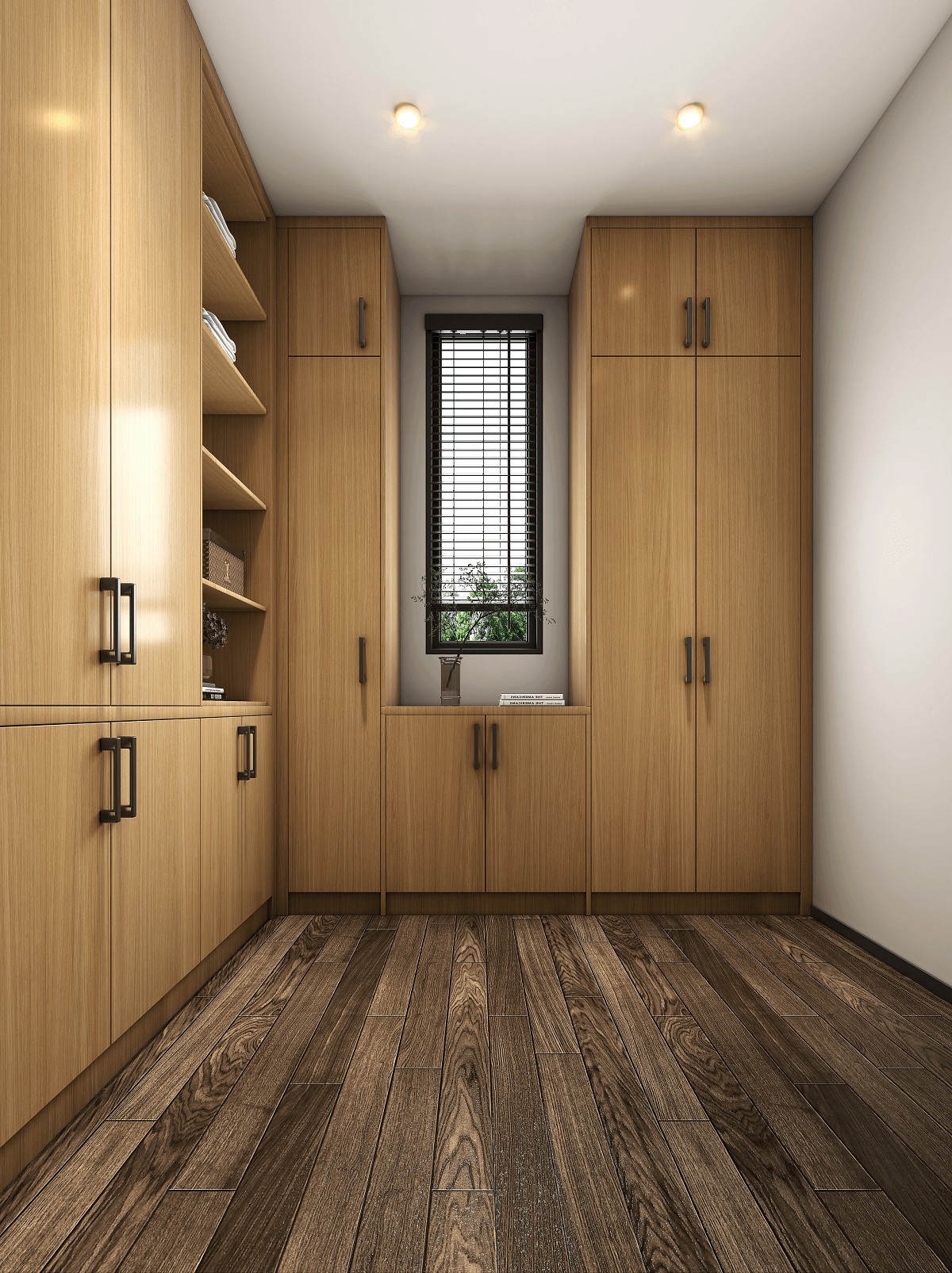 The wardrobe is mainly brown, with light-colored floors, and the overall use of advanced solid wood, thick and steady, with a strong sense of classical depth.