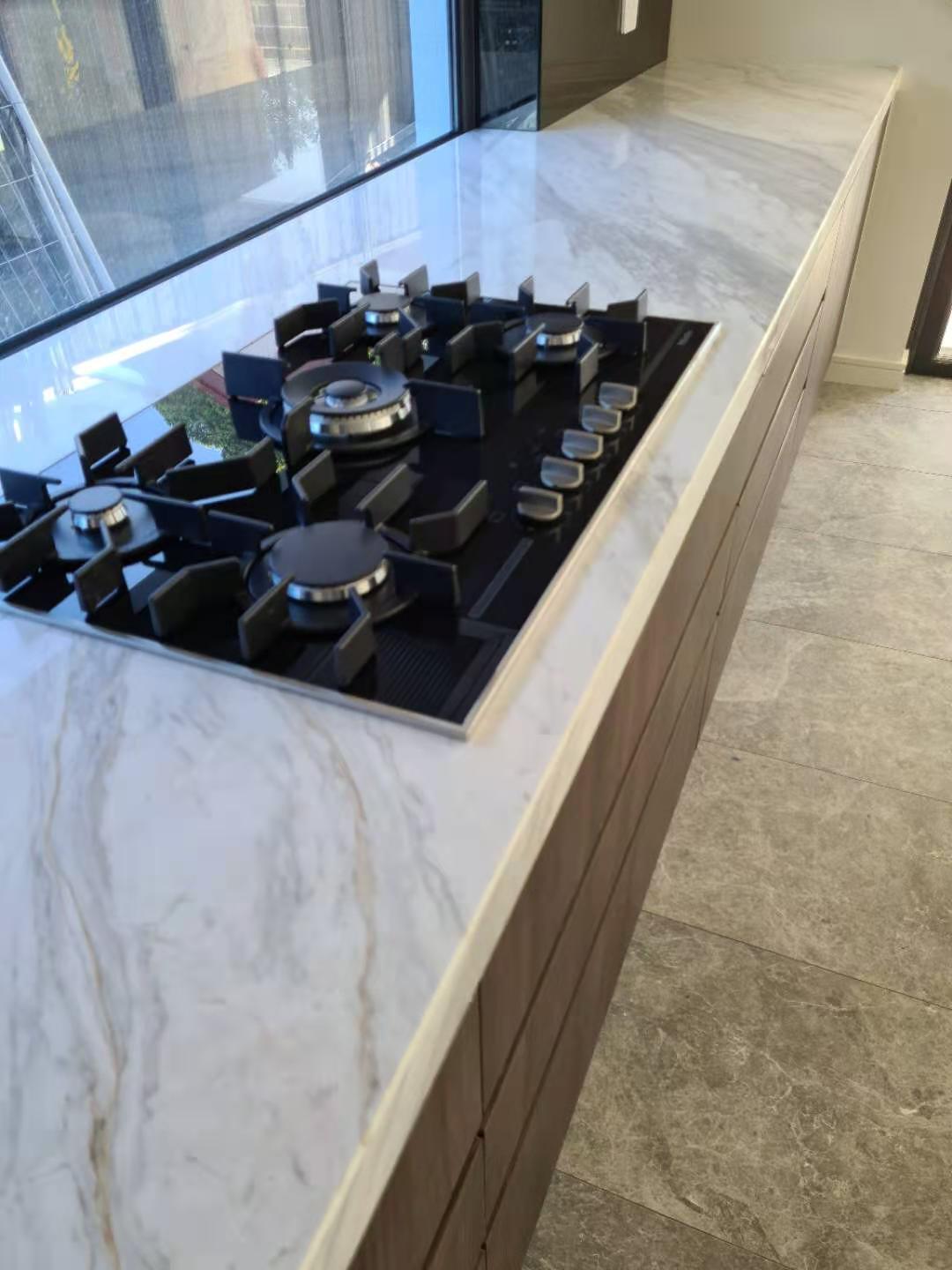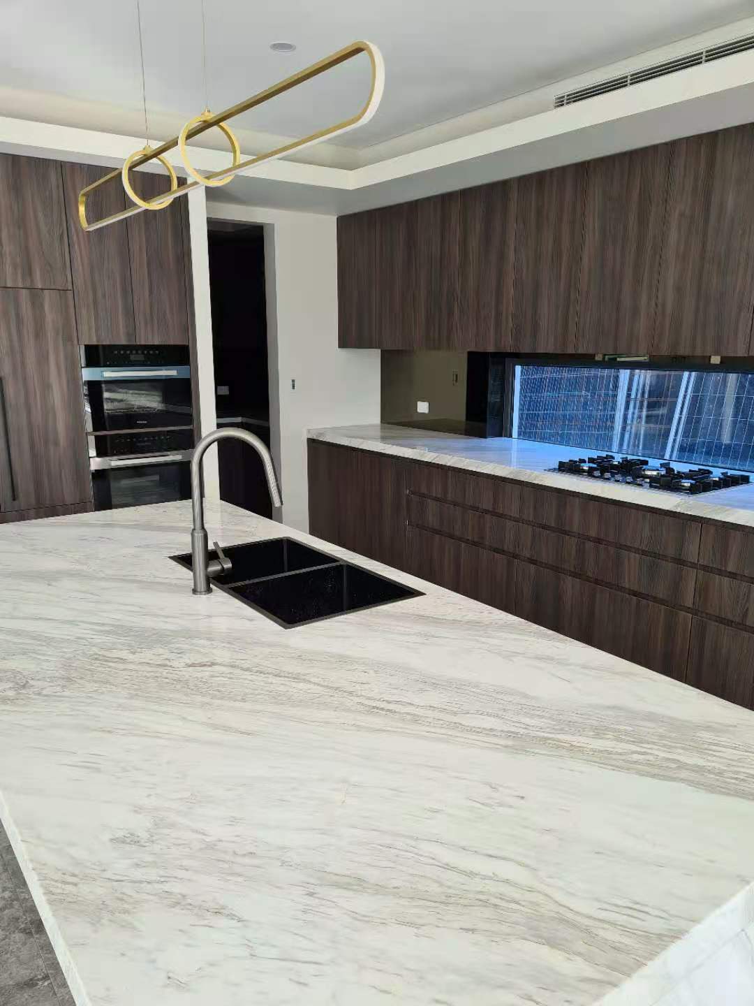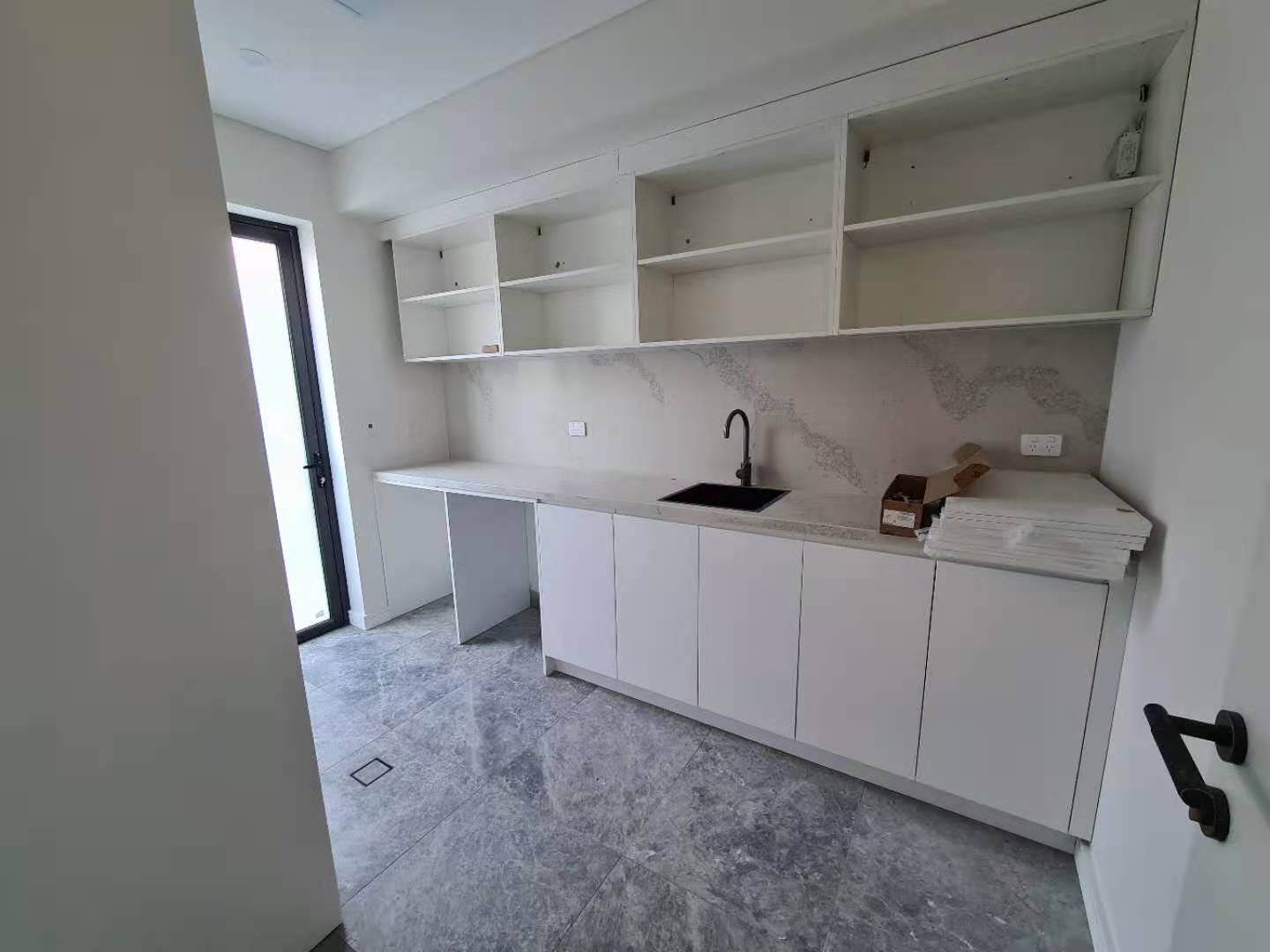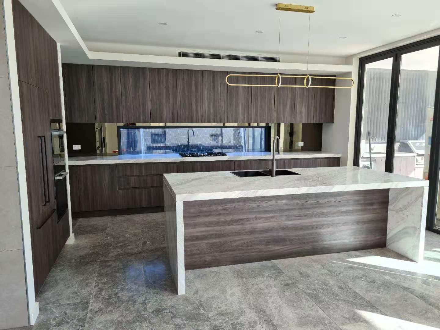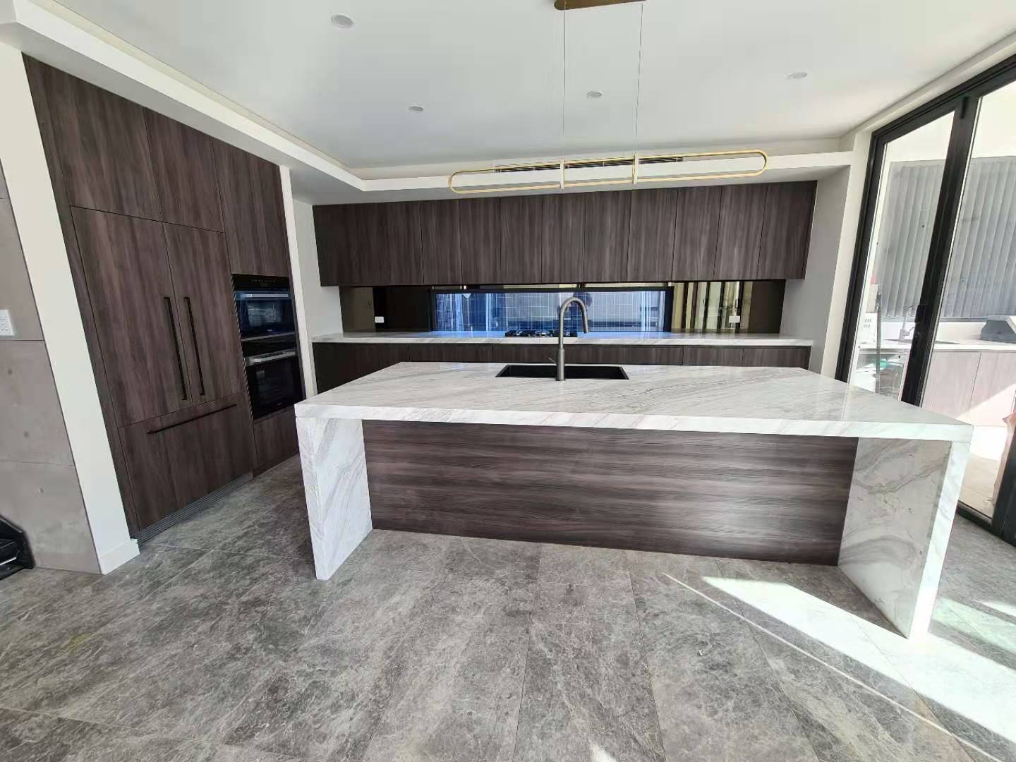 It is a minimalist villa whole house project for a Australian customer. The living room, kitchen, vanity and closet look broader and more luminous, featuring a suitable area of wood grauin cabinets and some dark wood open cabinets.