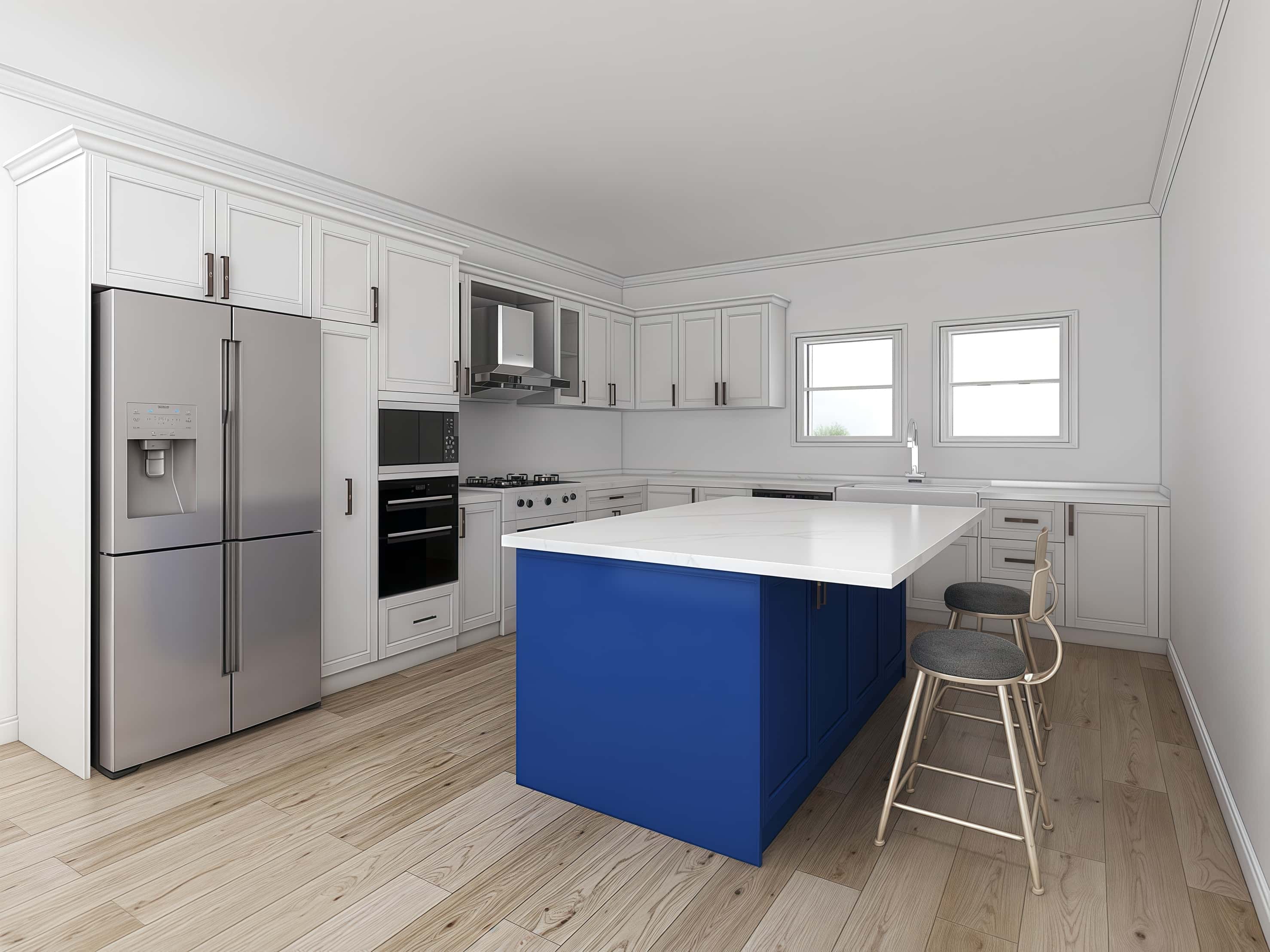 Modern Residential Kitchen Project In the USA. Popular Shaker Design With Lacquer Finish Solid Wood Kitchen Cabinets.